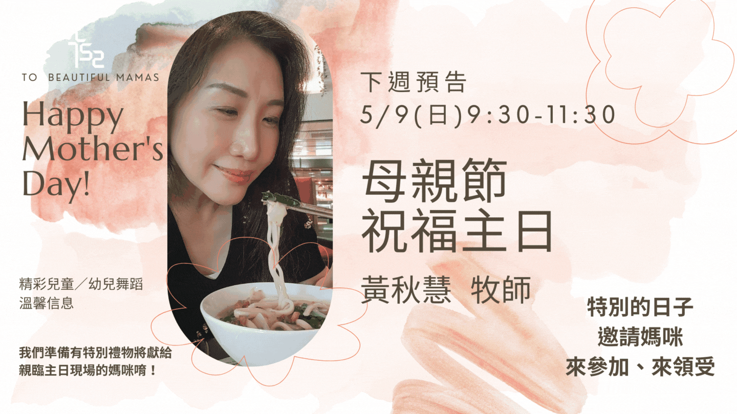 母親節祝福主日邀請媽咪來領受最棒的祝福